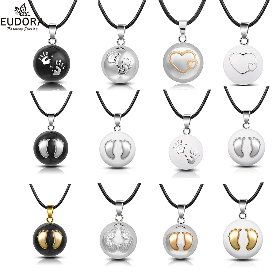 Eudora, collar con colgante de bola de carillón con huella de manos de bebé, colgante de llamador de Ángel con bola para embarazadas para mujer, el mejor regalo para mamá