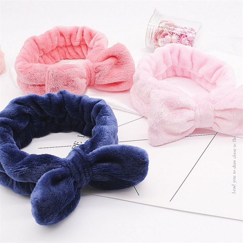 Diademas cosméticas de franela, banda elástica para el pelo con lazo suave, encaje para lavar la cara, ducha, Spa, herramientas de maquillaje